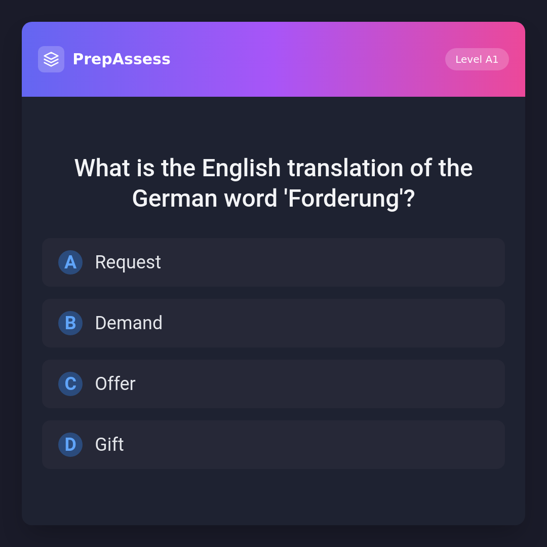What is the English translation of the German word 'Forderung'?