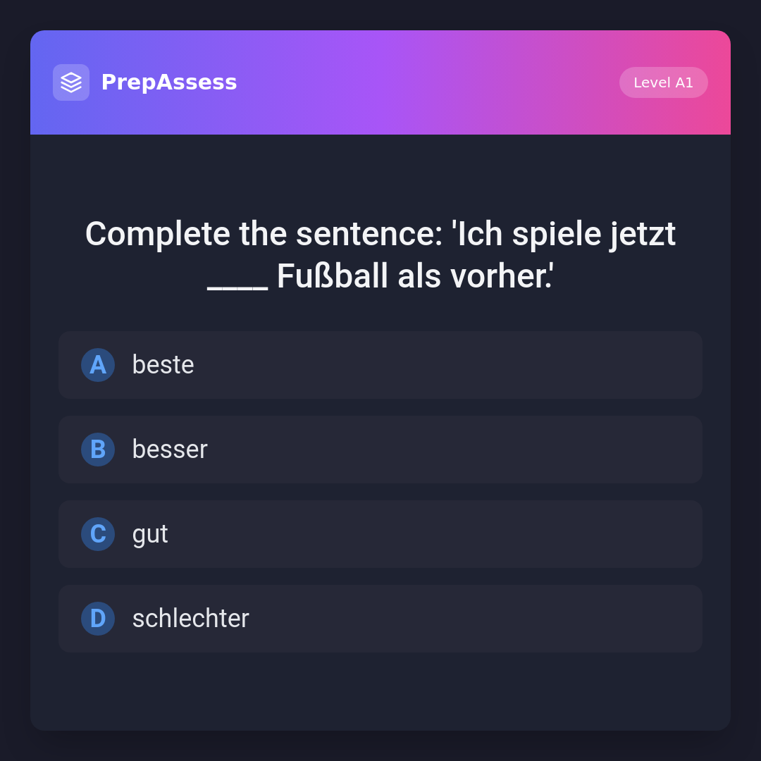 Complete the sentence: 'Ich spiele jetzt ____ Fußball als vorher.'