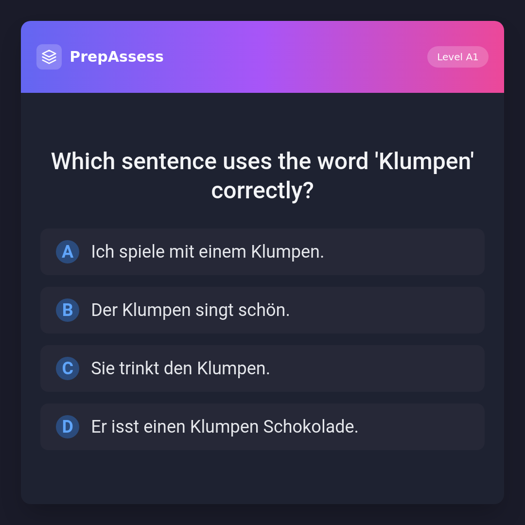 Which sentence uses the word 'Klumpen' correctly?