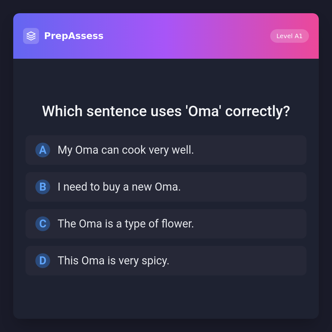 Which sentence uses 'Oma' correctly?