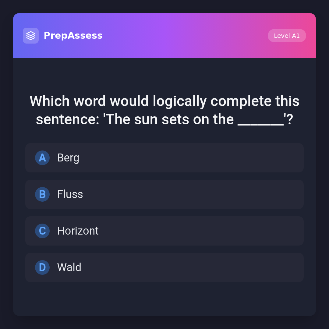 Which word would logically complete this sentence: 'The sun sets on the _______'?