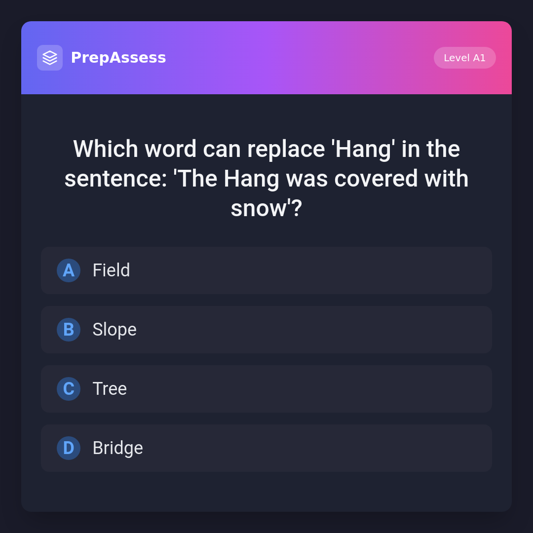 Which word can replace 'Hang' in the sentence: 'The Hang was covered with snow'?