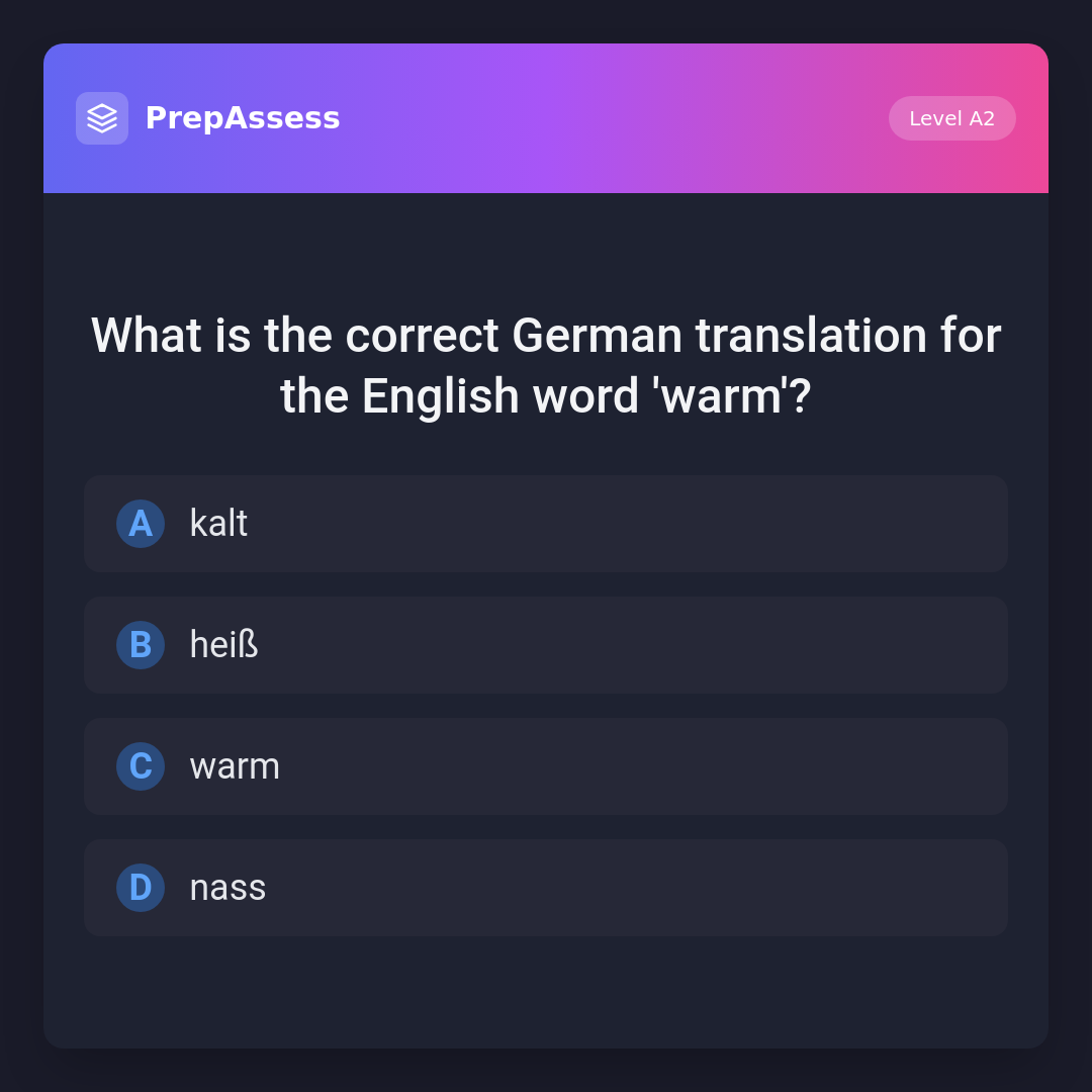 What is the correct German translation for the English word 'warm'?