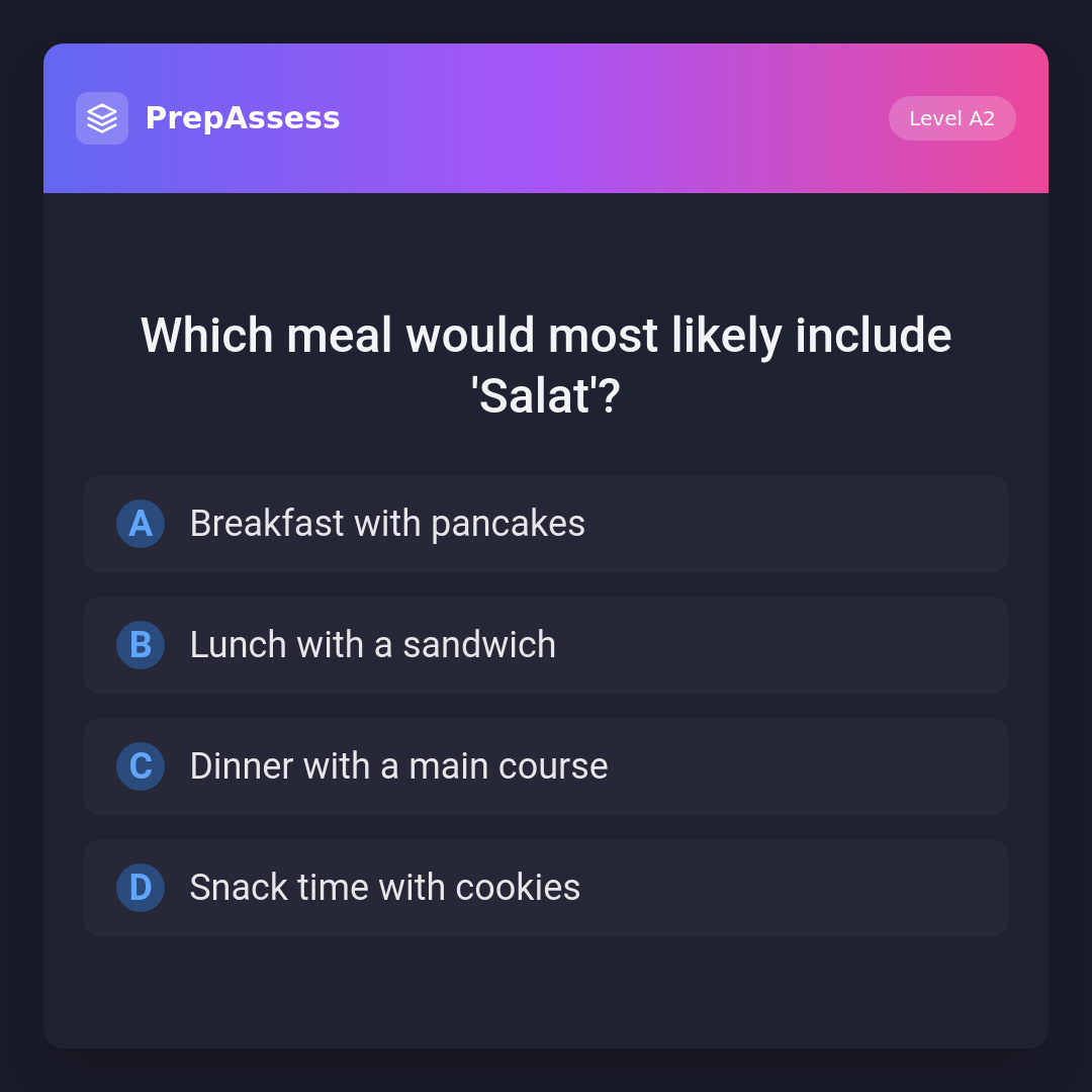 Which meal would most likely include 'Salat'?
