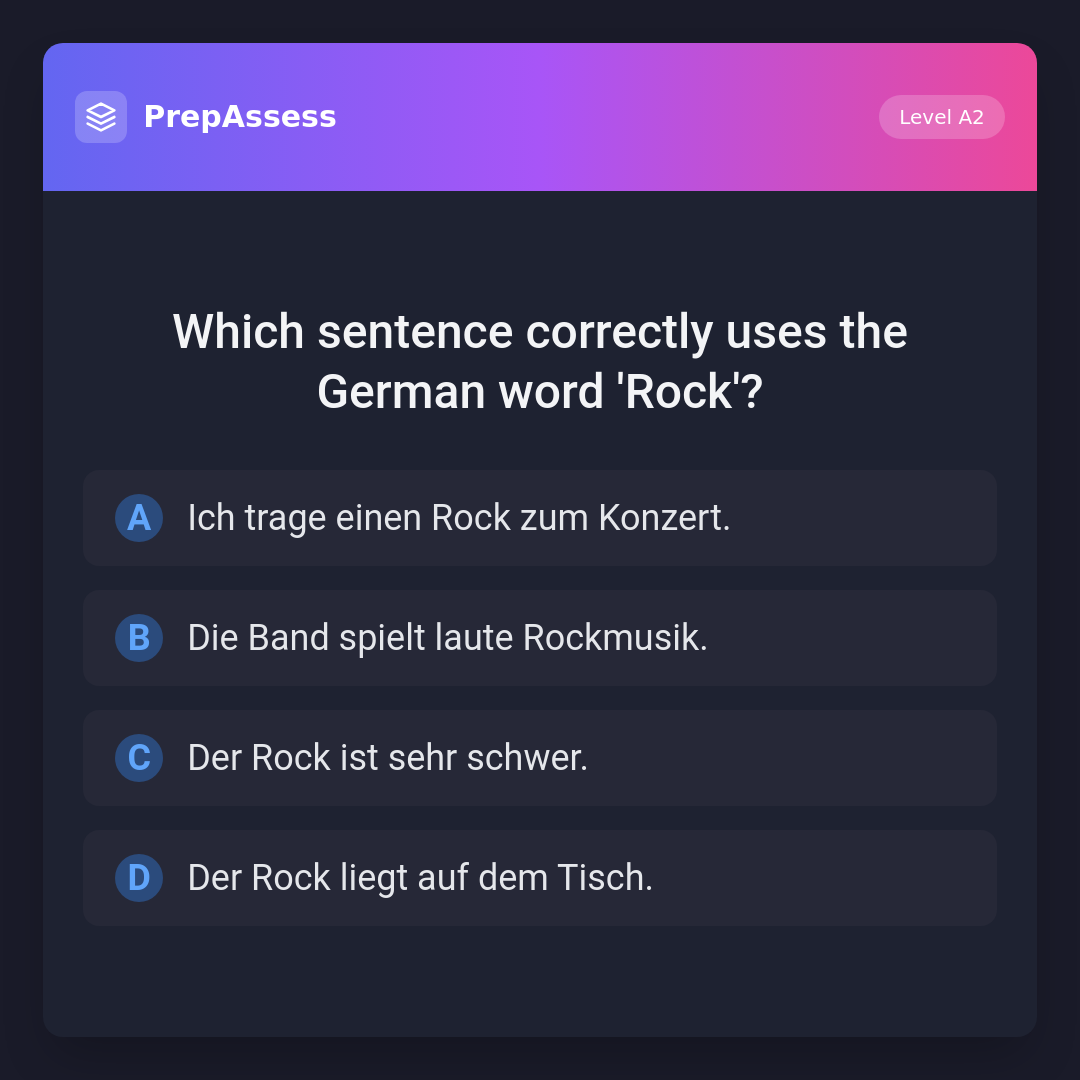 Which sentence correctly uses the German word 'Rock'?