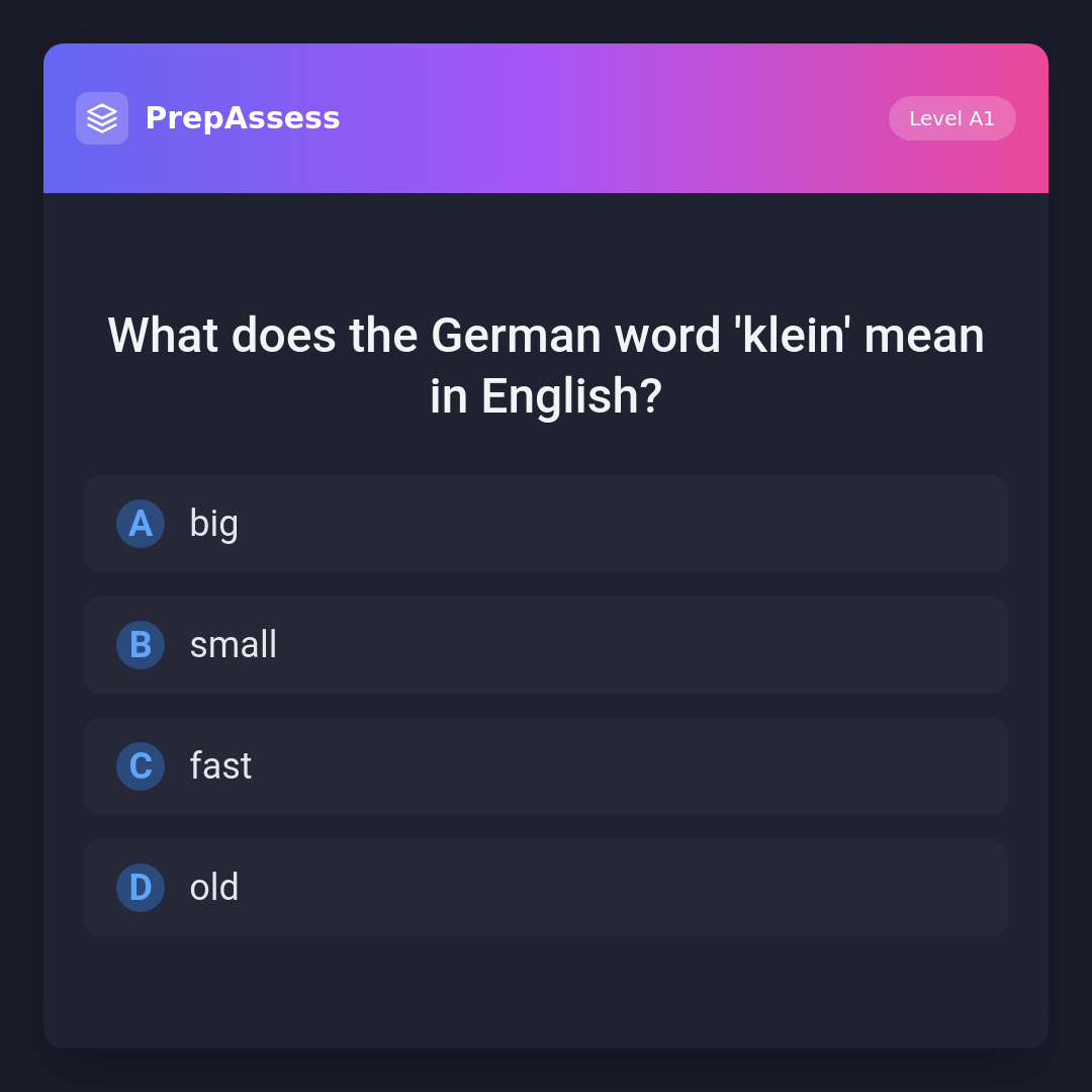 What does the German word 'klein' mean in English?