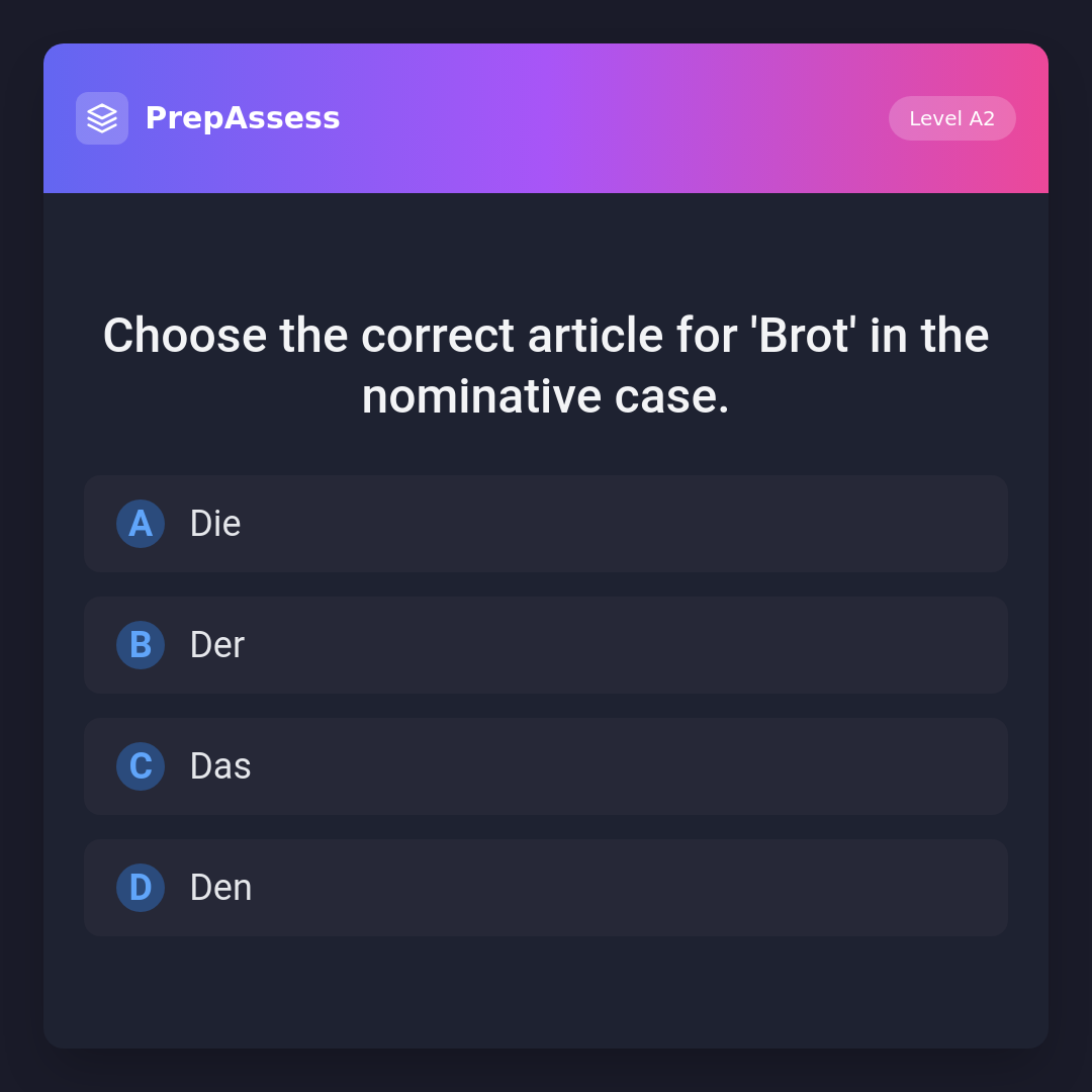 Choose the correct article for 'Brot' in the nominative case.