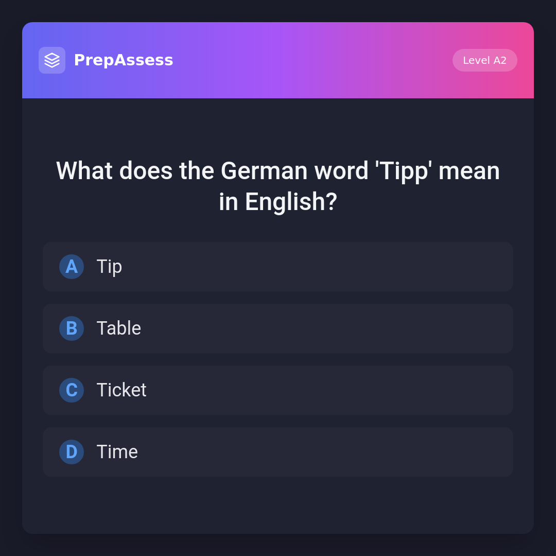 What does the German word 'Tipp' mean in English?