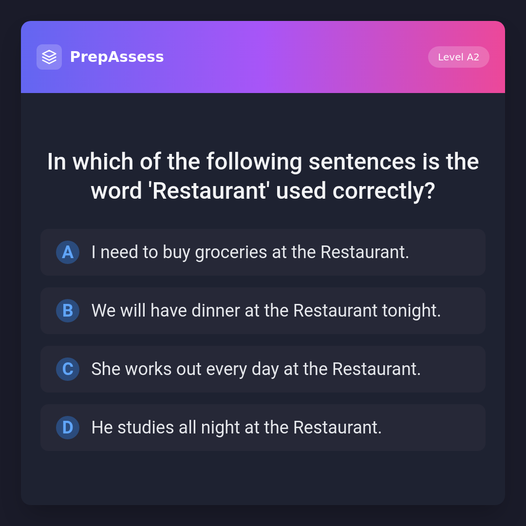 In which of the following sentences is the word 'Restaurant' used correctly?