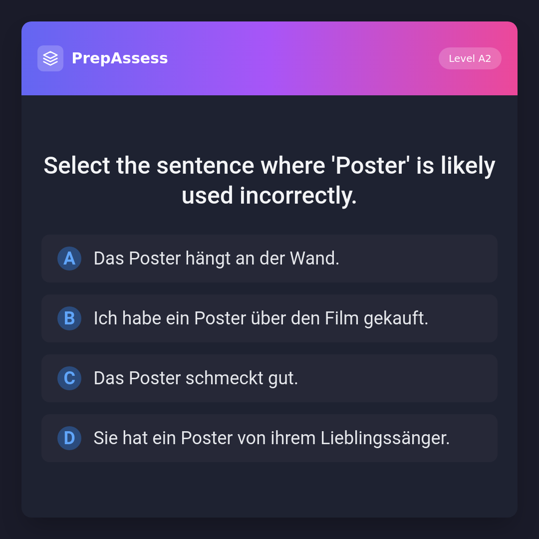 Select the sentence where 'Poster' is likely used incorrectly.