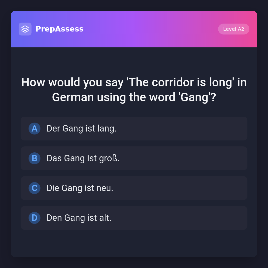 How would you say 'The corridor is long' in German using the word 'Gang'?