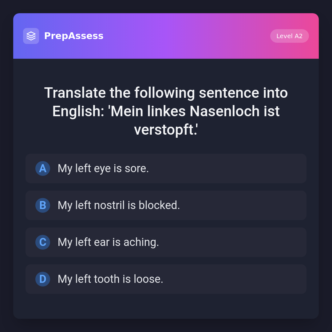 Translate the following sentence into English: 'Mein linkes Nasenloch ist verstopft.'