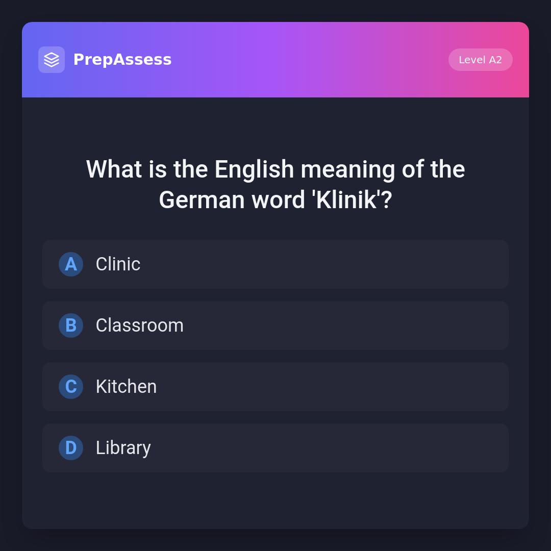 What is the English meaning of the German word 'Klinik'?