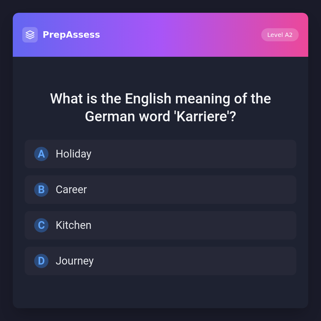 What is the English meaning of the German word 'Karriere'?