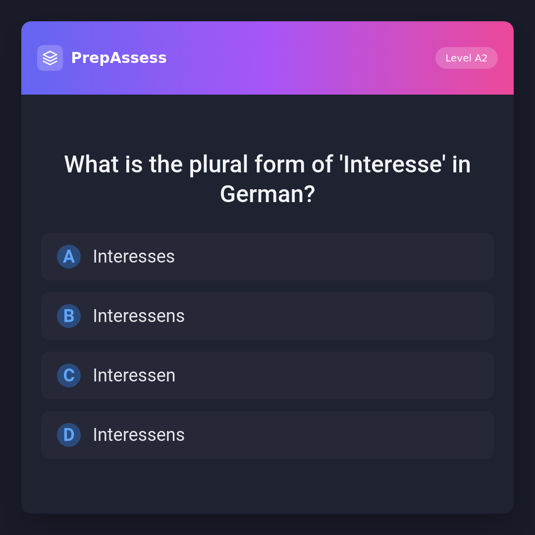 What is the plural form of 'Interesse' in German?