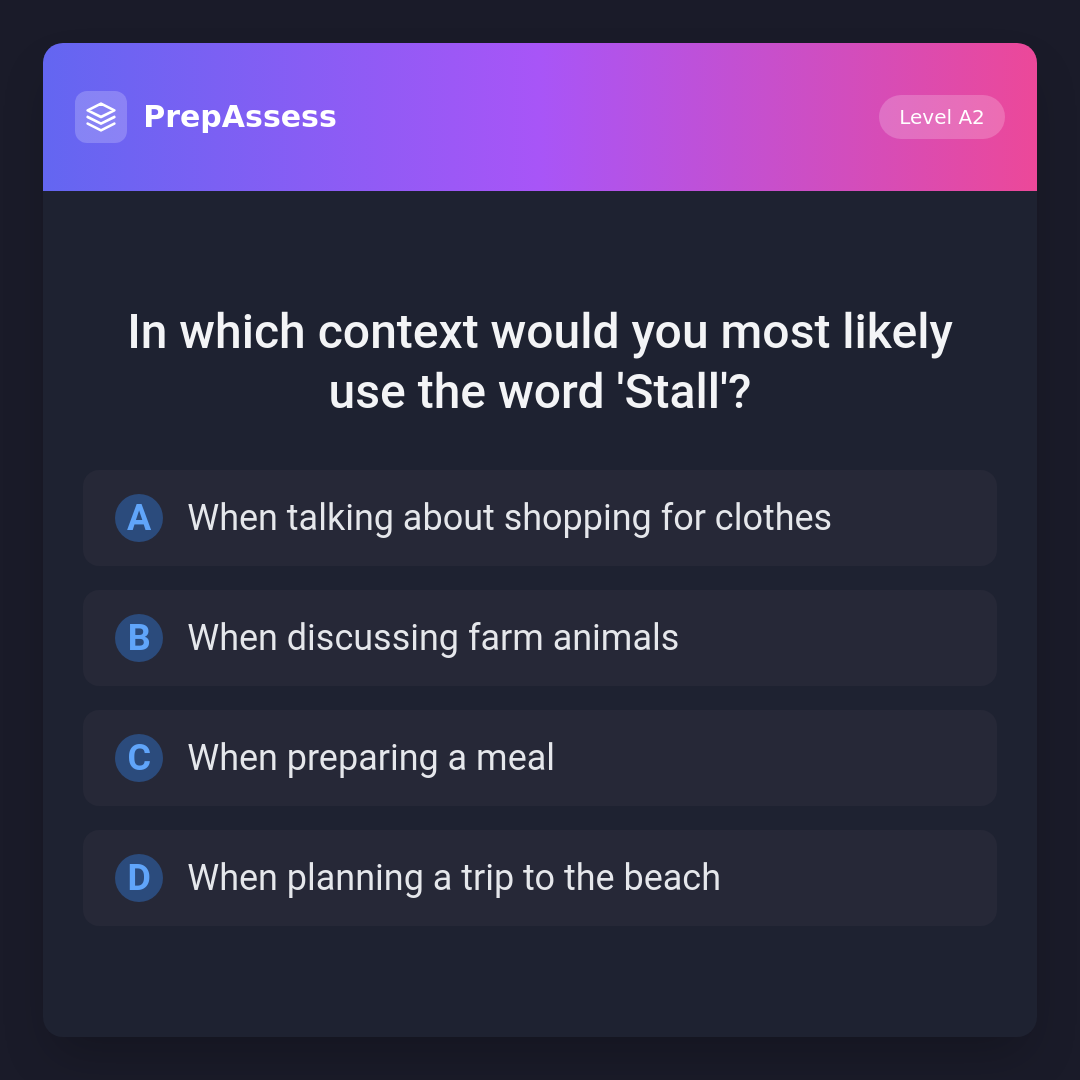 In which context would you most likely use the word 'Stall'?