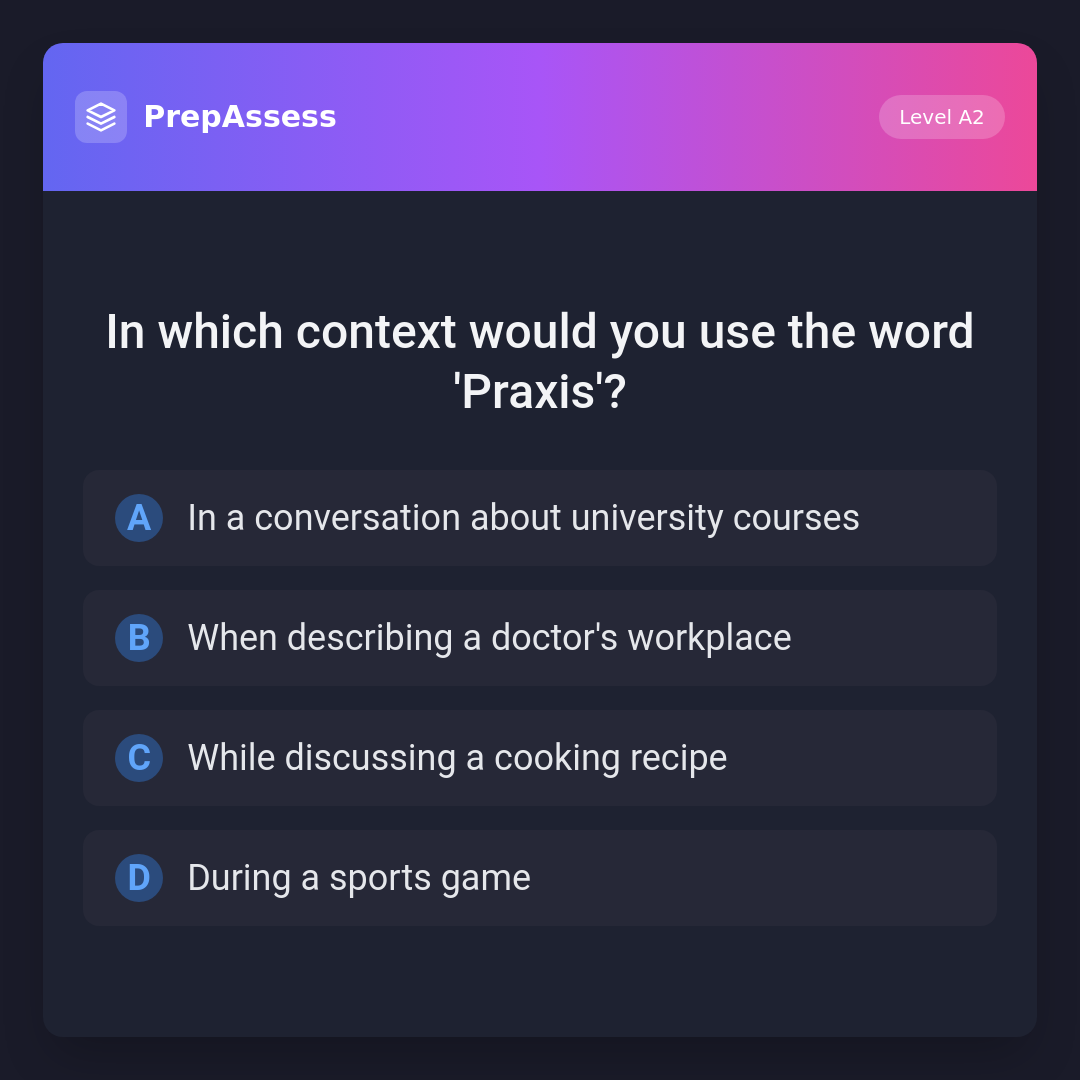 In which context would you use the word 'Praxis'?