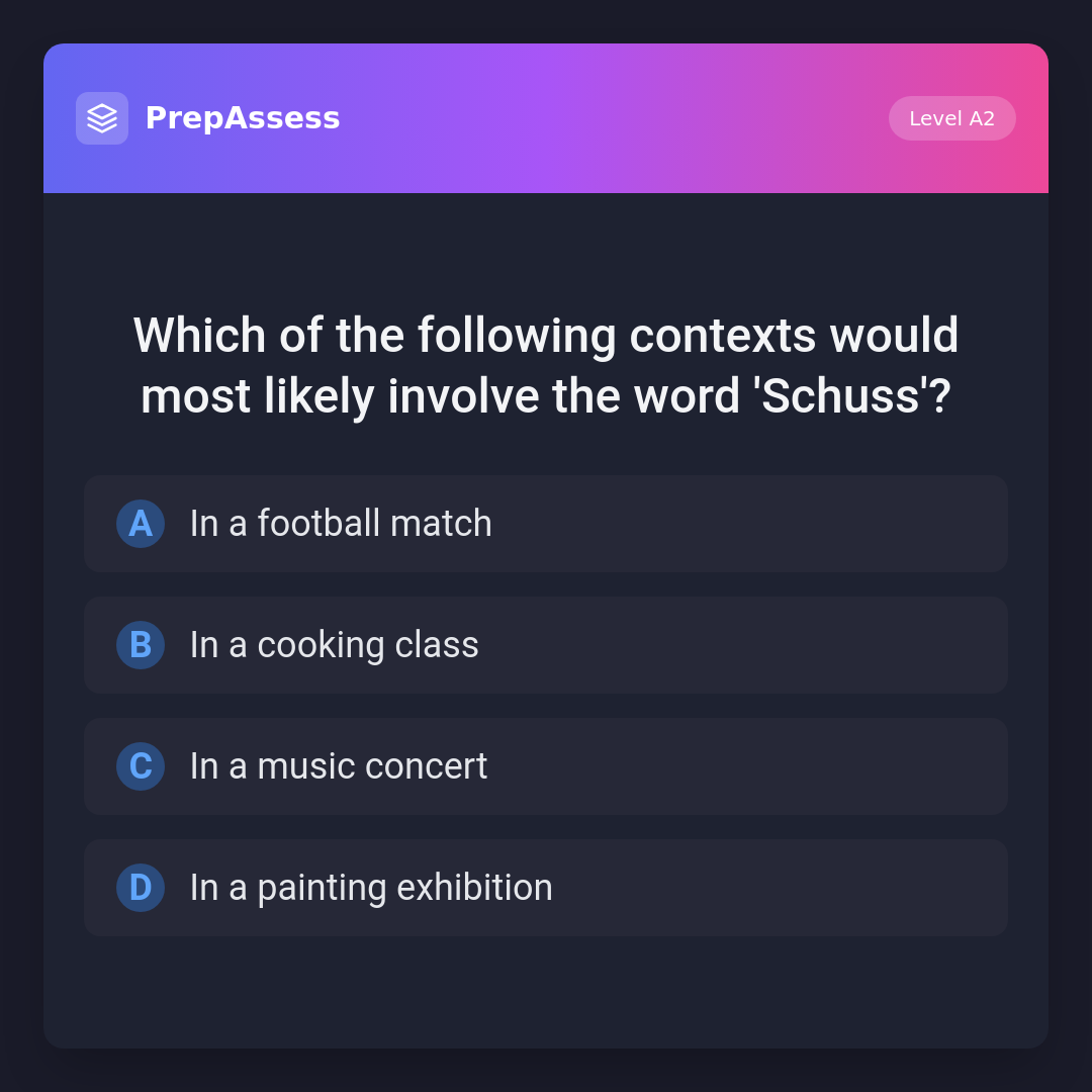 Which of the following contexts would most likely involve the word 'Schuss'?
