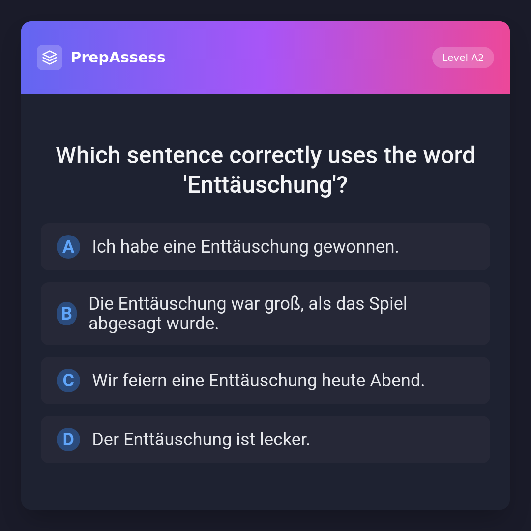 Which sentence correctly uses the word 'Enttäuschung'?