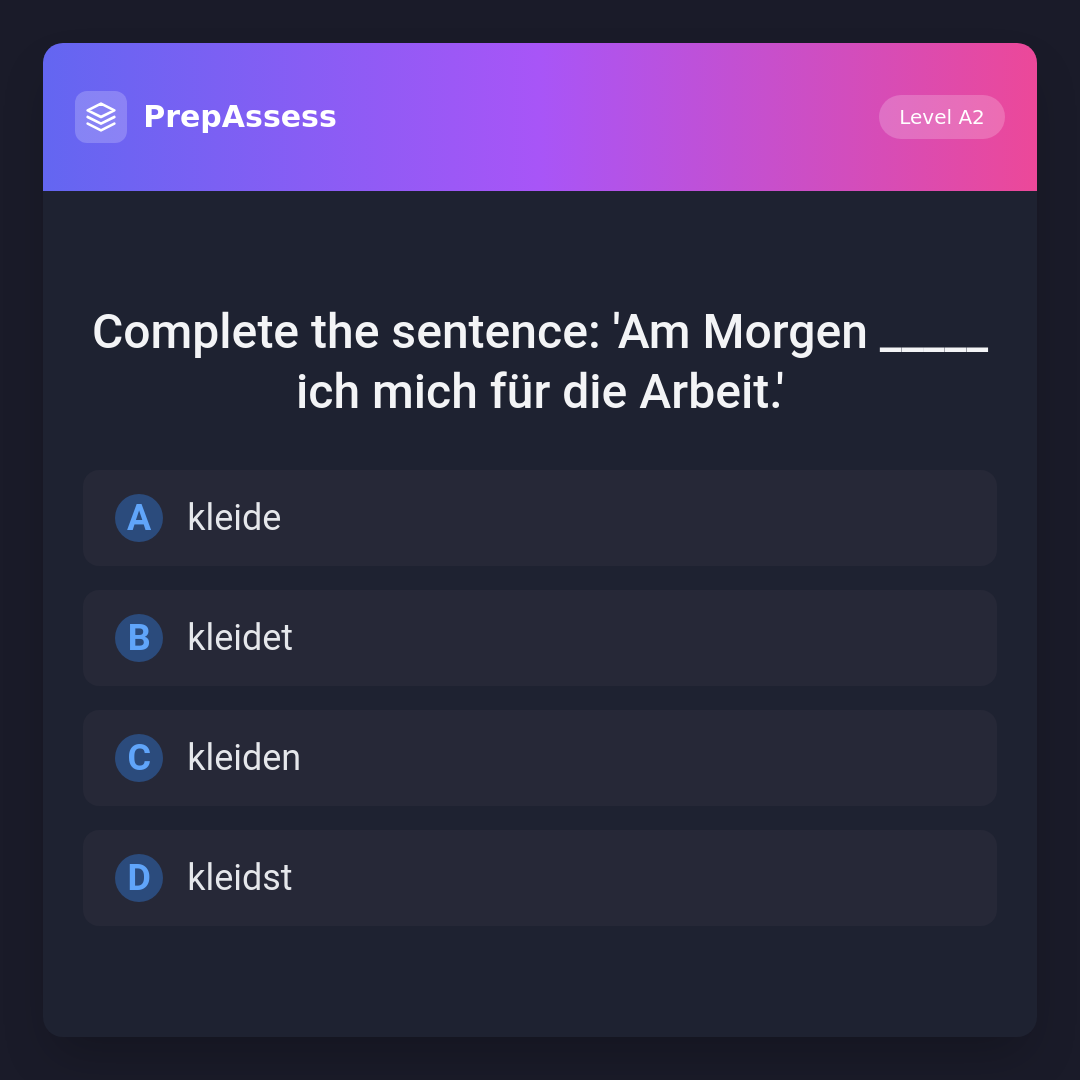 Complete the sentence: 'Am Morgen _____ ich mich für die Arbeit.'