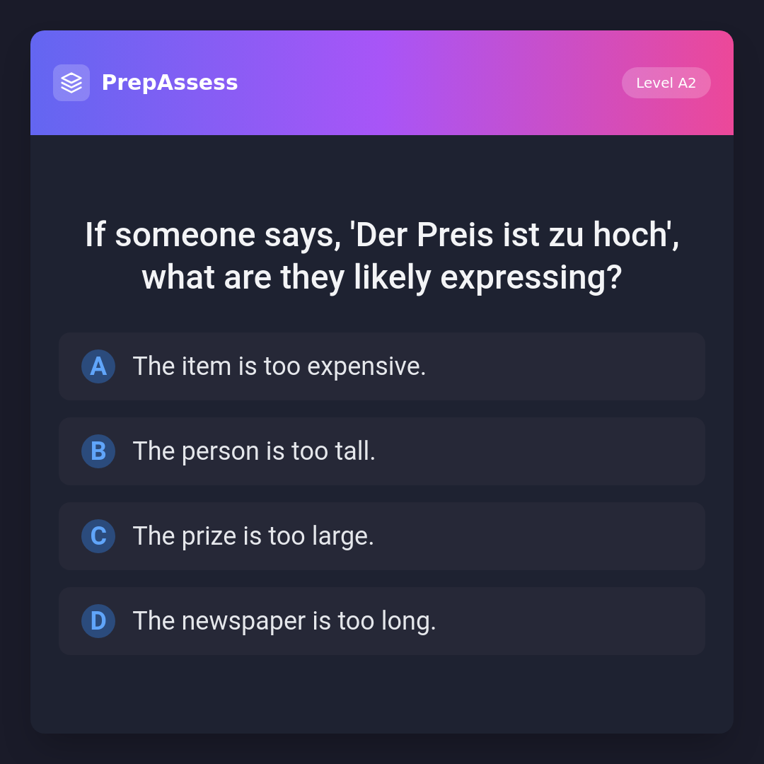 If someone says, 'Der Preis ist zu hoch', what are they likely expressing?