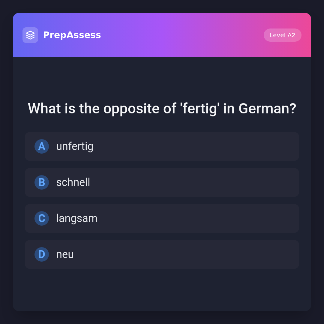 What is the opposite of 'fertig' in German?