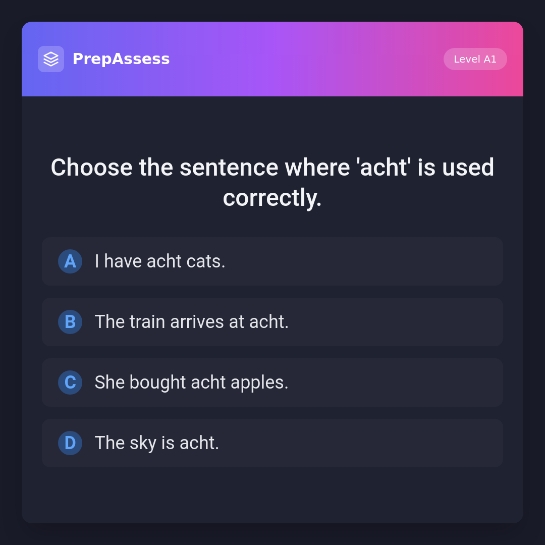 Choose the sentence where 'acht' is used correctly.