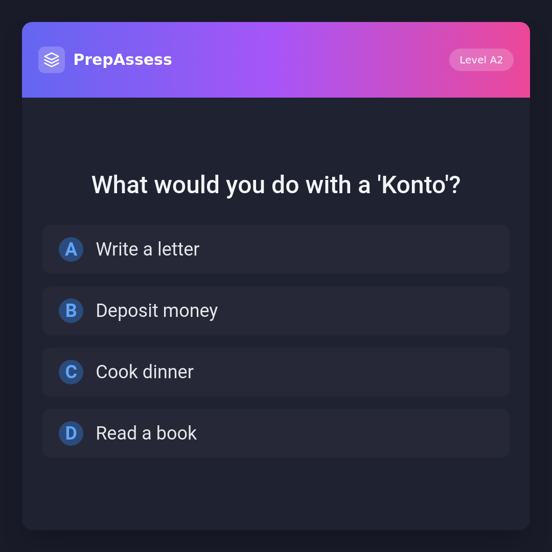 You would 'deposit money' into a 'Konto', which is a financial account. The other activities do not involve an account.