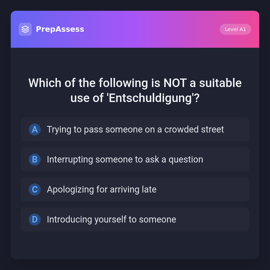 Which of the following is NOT a suitable use of 'Entschuldigung'?