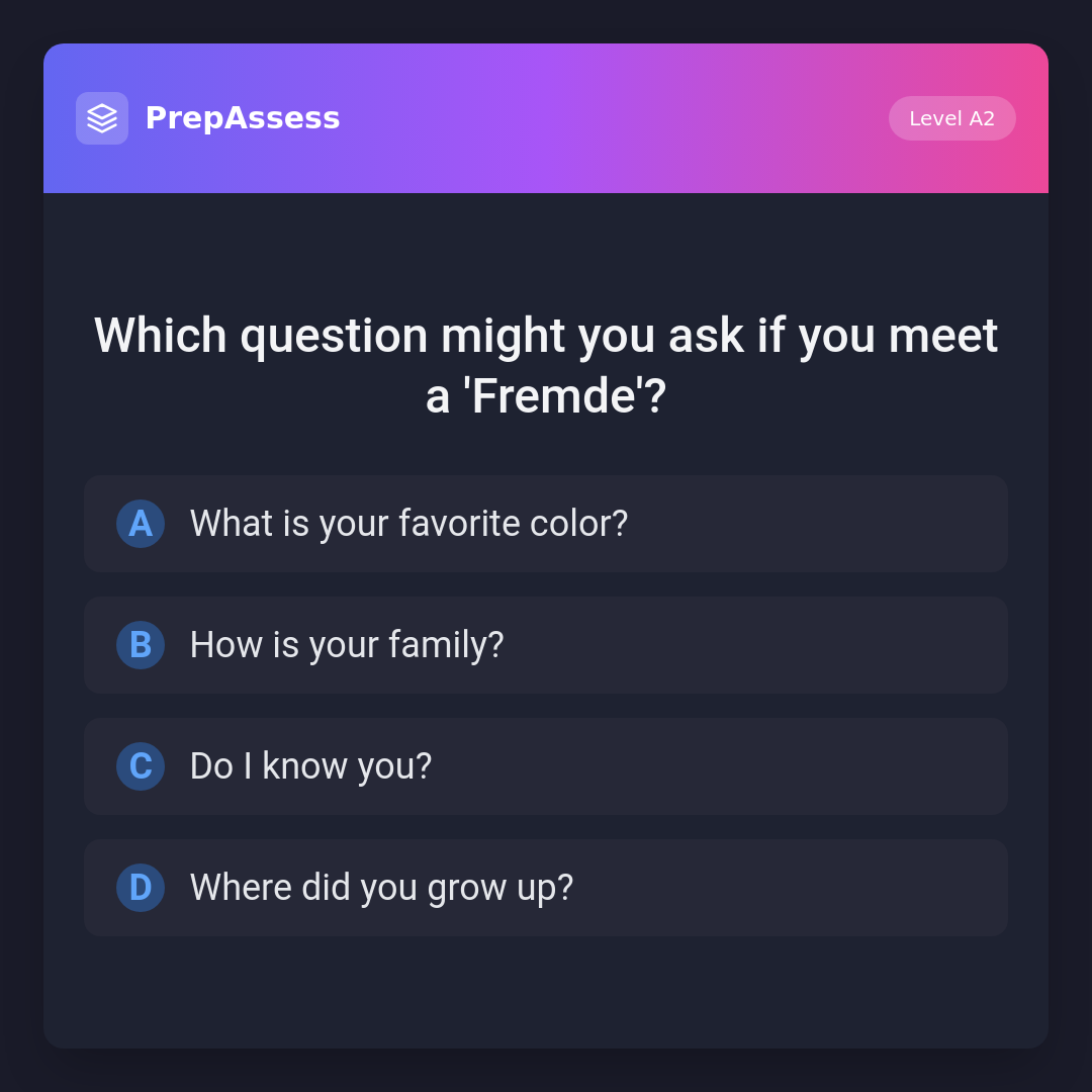 Which question might you ask if you meet a 'Fremde'?