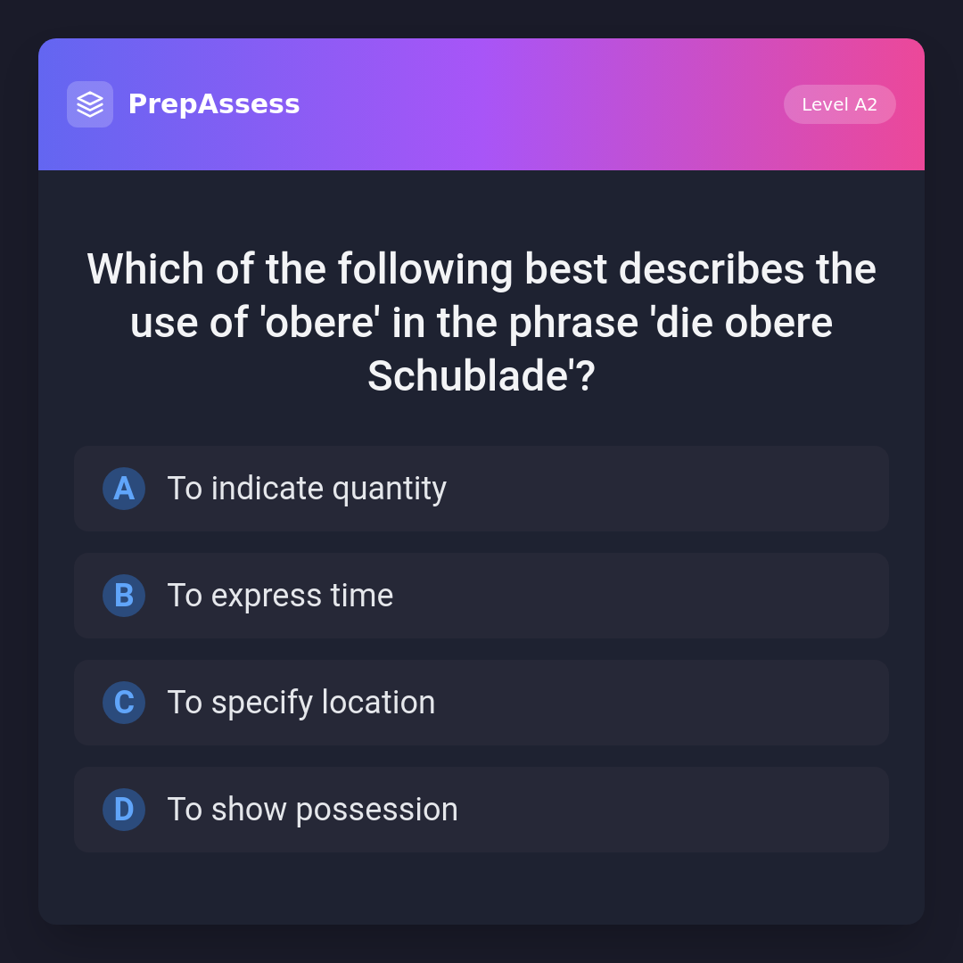 Which of the following best describes the use of 'obere' in the phrase 'die obere Schublade'?
