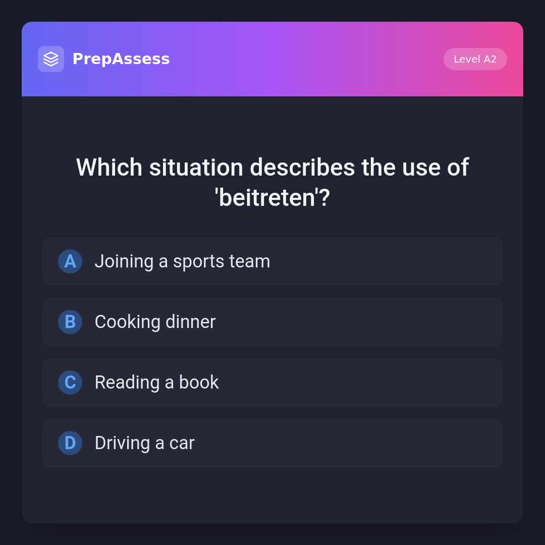 Which situation describes the use of 'beitreten'?