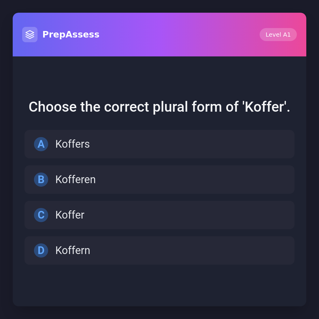 Choose the correct plural form of 'Koffer'.