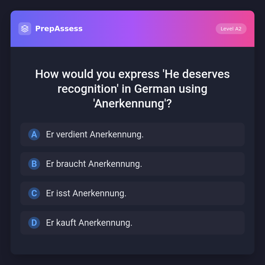 How would you express 'He deserves recognition' in German using 'Anerkennung'?