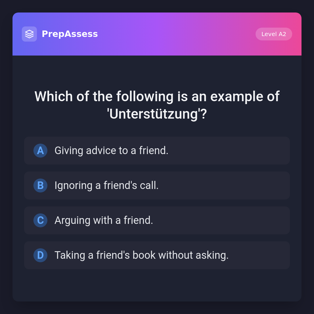 Which of the following is an example of 'Unterstützung'?
