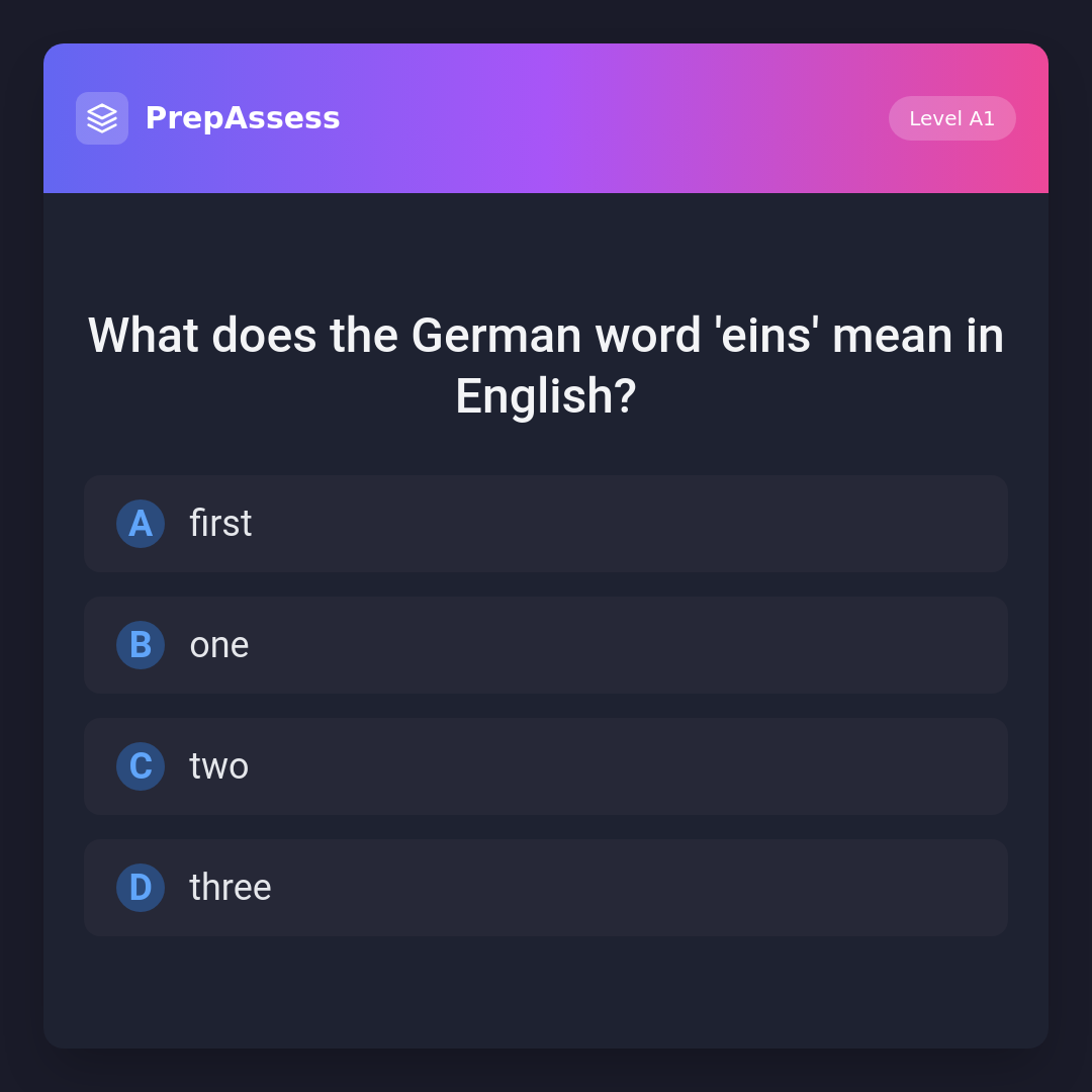 What does the German word 'eins' mean in English?