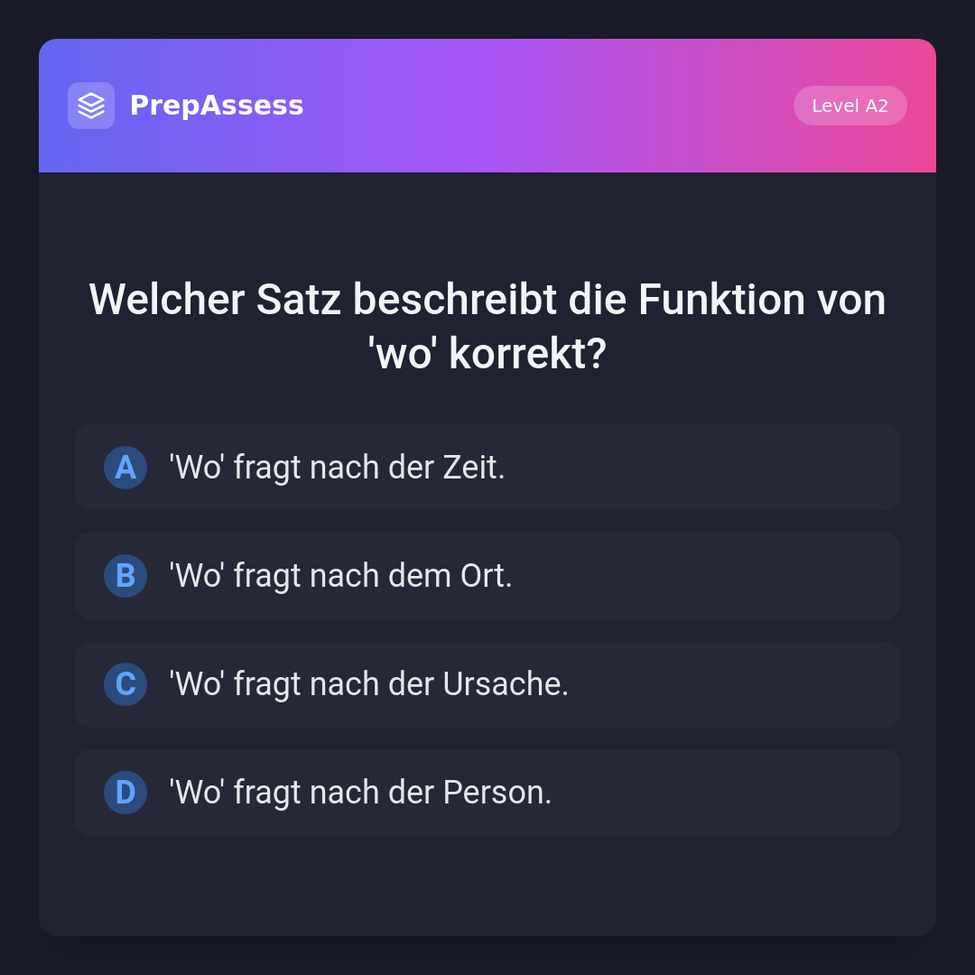 Welcher Satz beschreibt die Funktion von 'wo' korrekt?