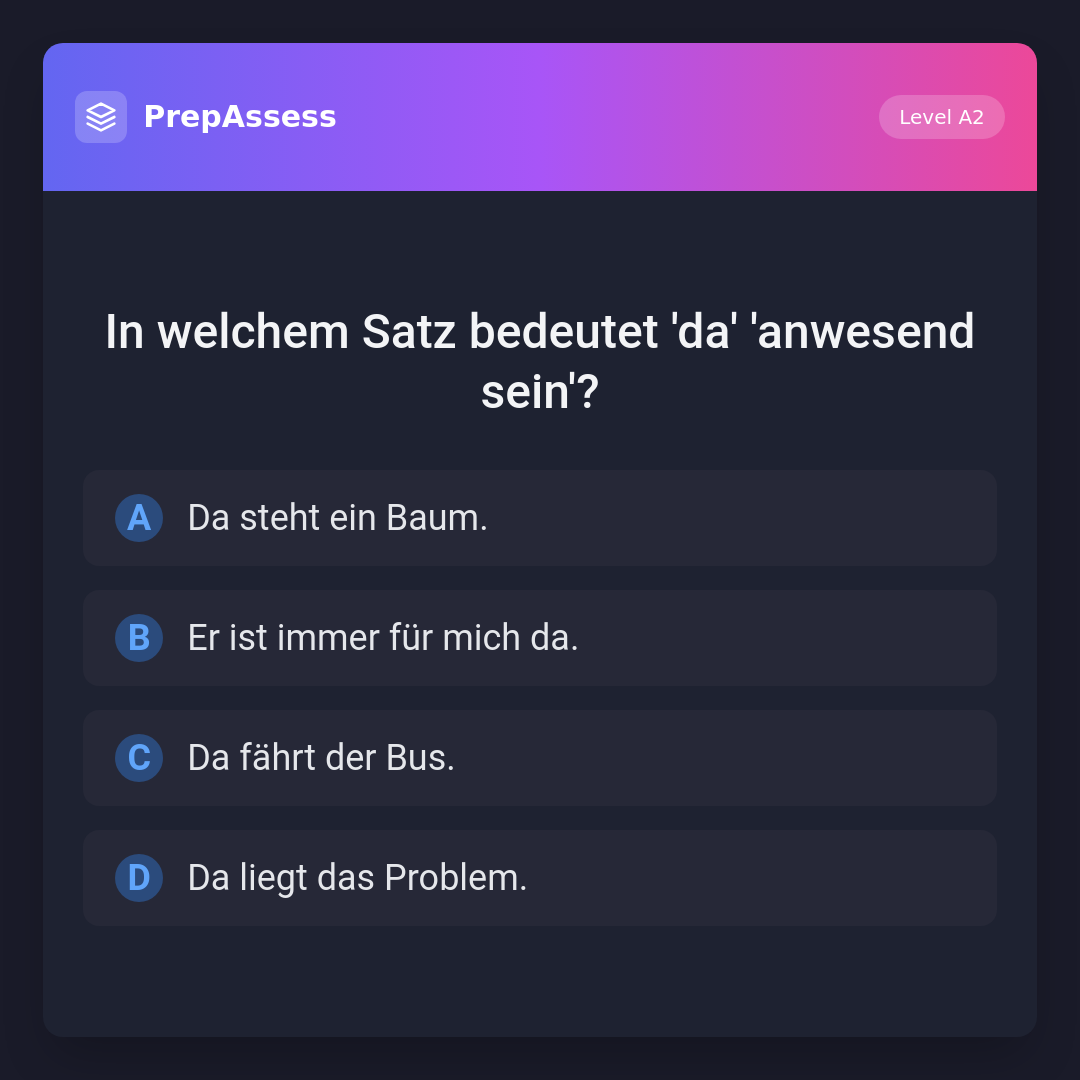 In welchem Satz bedeutet 'da' 'anwesend sein'?