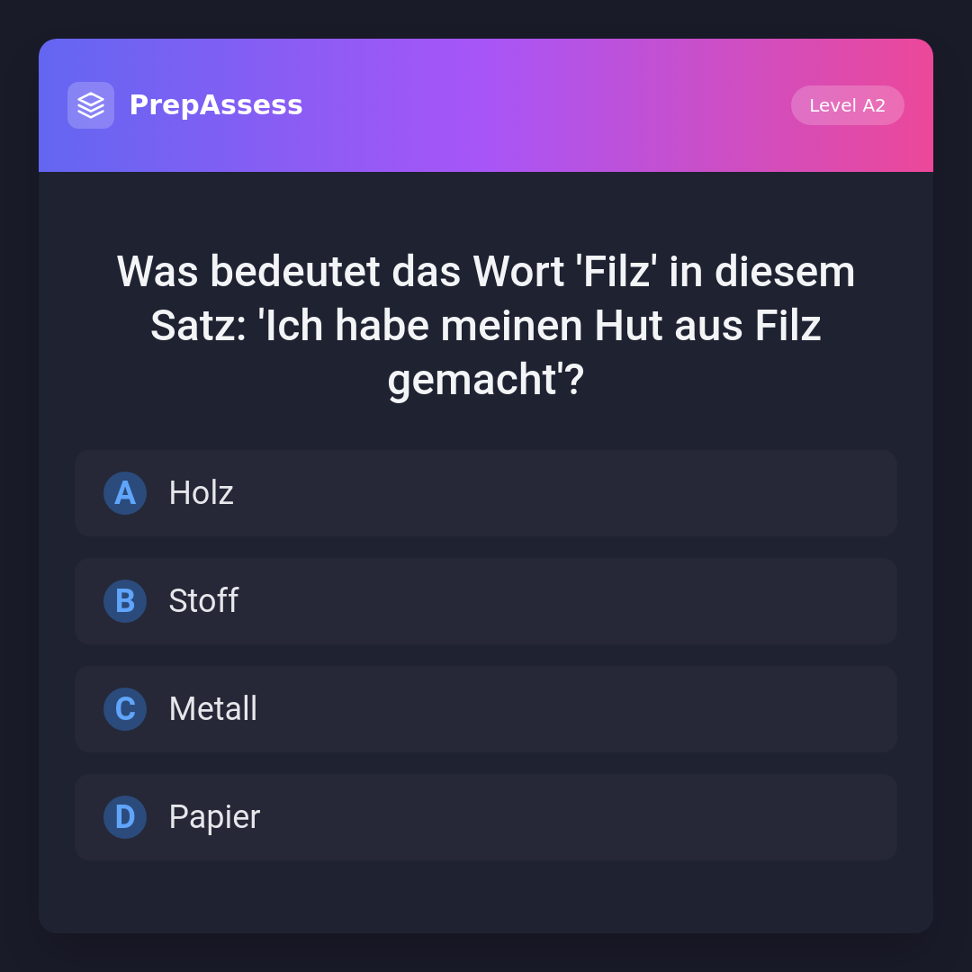 Was bedeutet das Wort 'Filz' in diesem Satz: 'Ich habe meinen Hut aus Filz gemacht'?