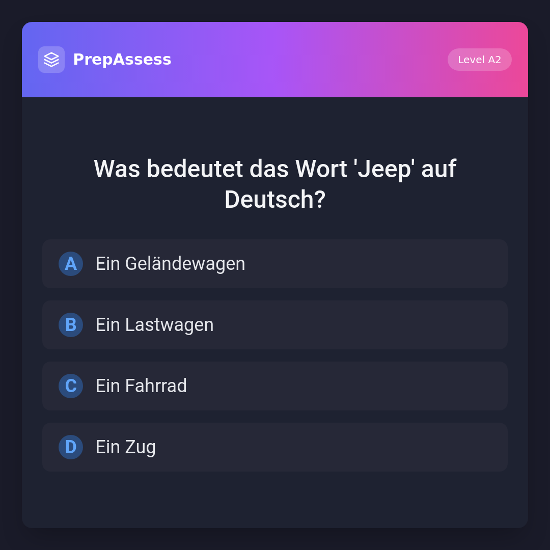 Was bedeutet das Wort 'Jeep' auf Deutsch?