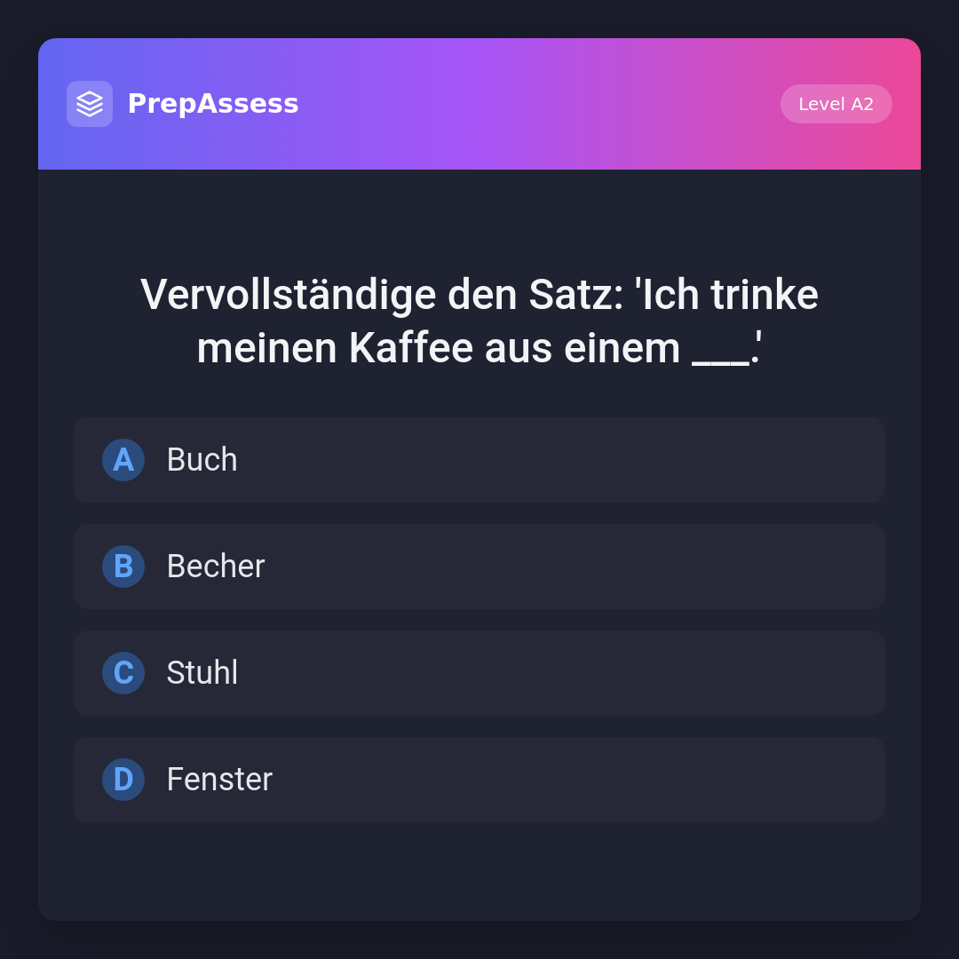 Vervollständige den Satz: 'Ich trinke meinen Kaffee aus einem ___.'