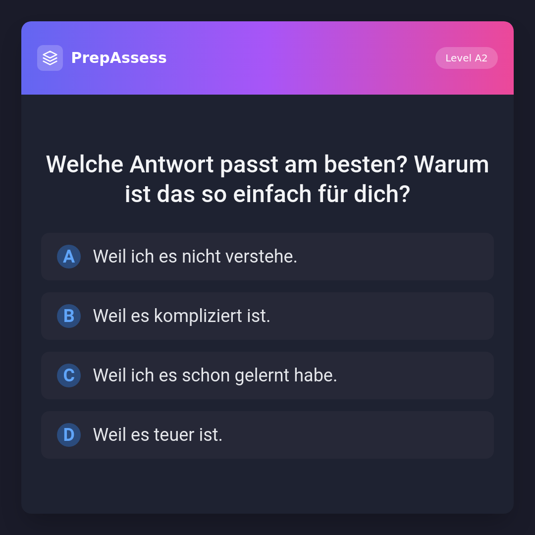 Welche Antwort passt am besten? Warum ist das so einfach für dich?