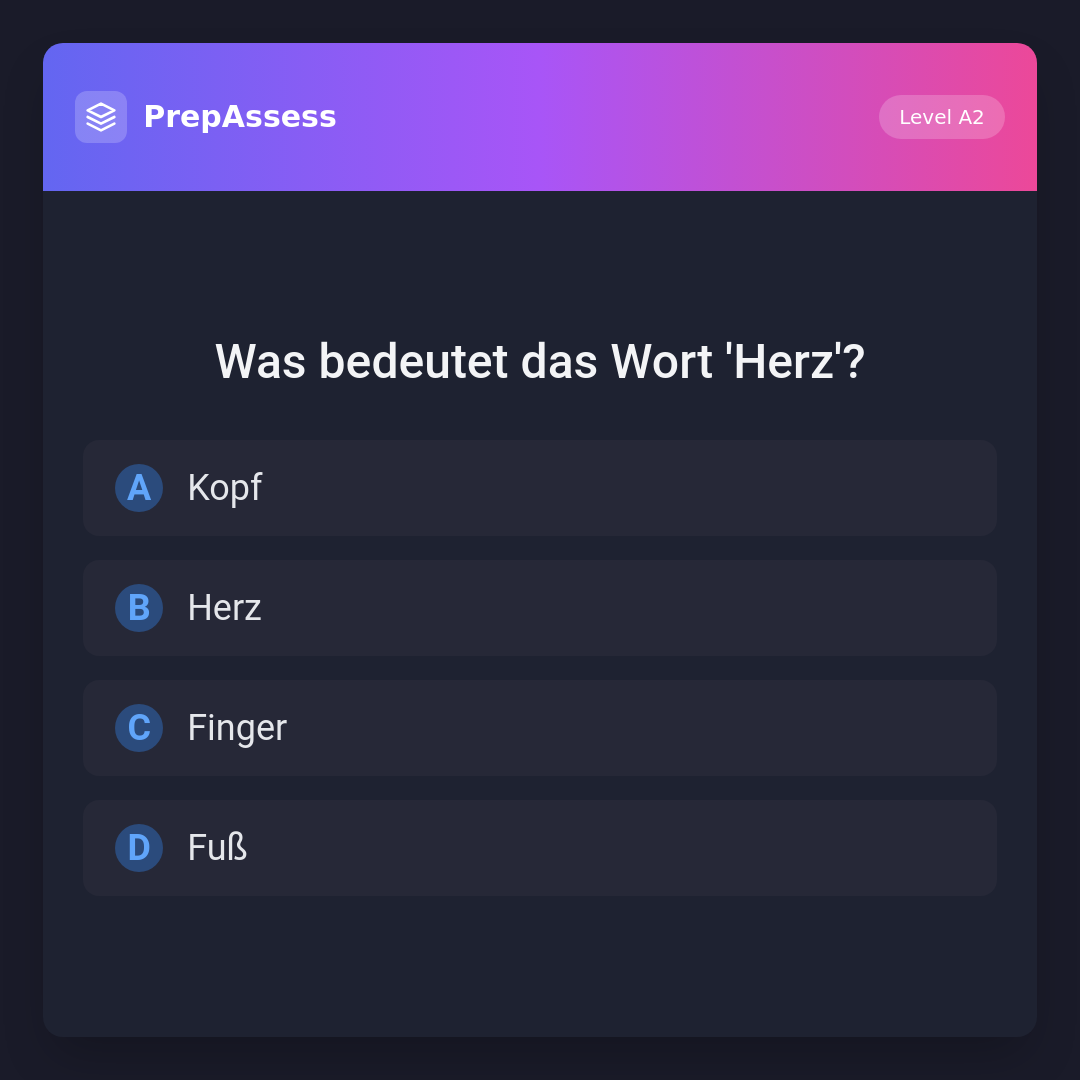 'Herz' bedeutet 'heart' auf Englisch. Es ist ein Organ im Körper, das Blut pumpt. Die anderen Optionen beziehen sich auf andere Teile des Körpers.