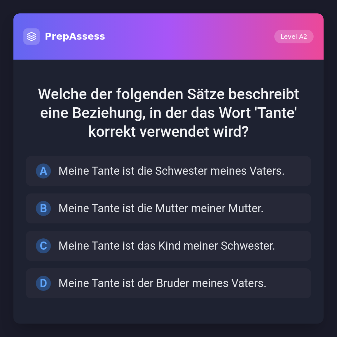 Welche der folgenden Sätze beschreibt eine Beziehung, in der das Wort 'Tante' korrekt verwendet wird?