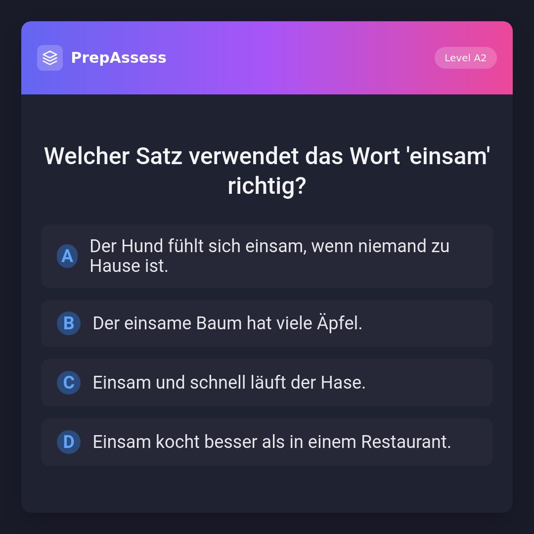 Welcher Satz verwendet das Wort 'einsam' richtig?