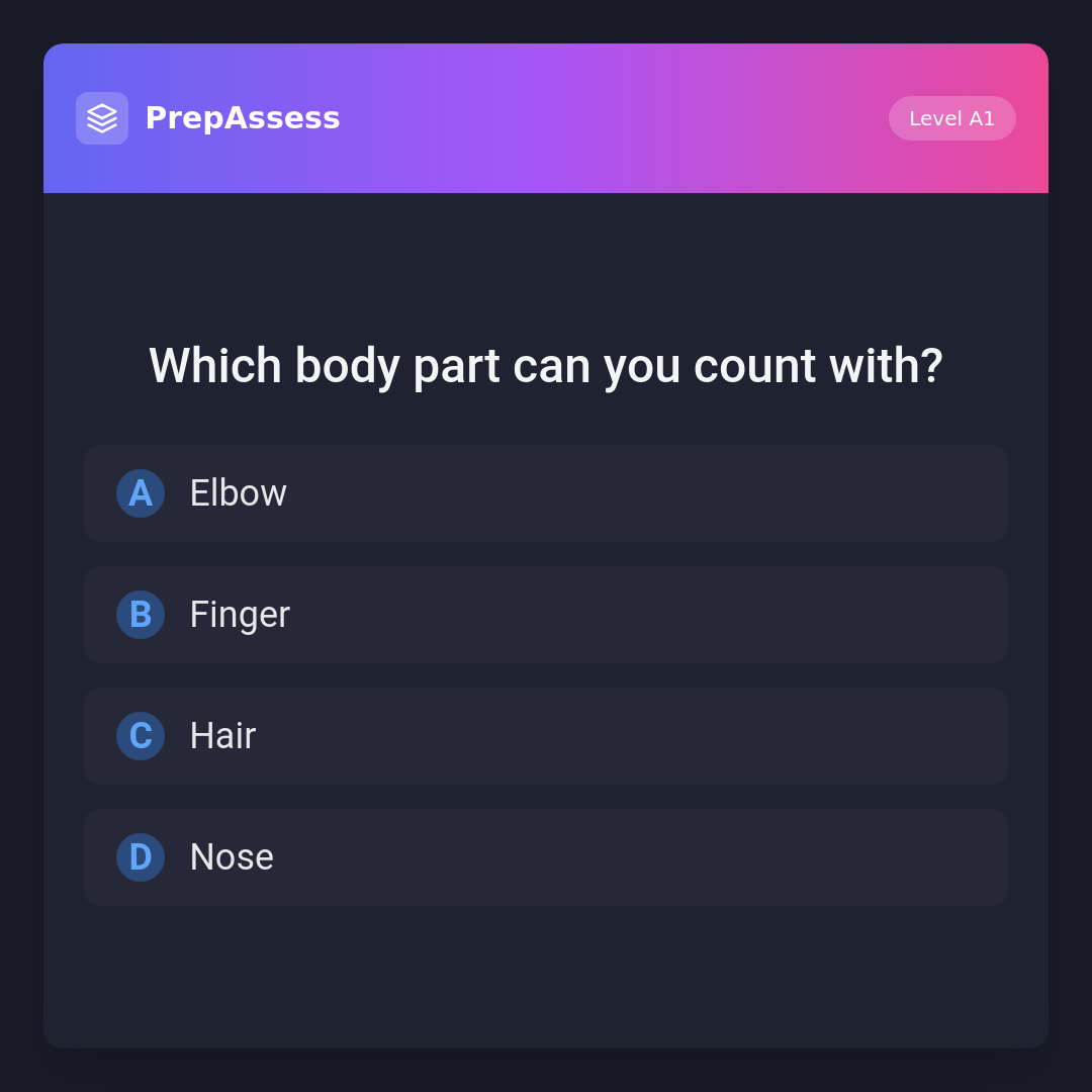 Fingers are commonly used for counting because they are flexible and easily visible. 'Elbow', 'Hair', and 'Nose' are not used for counting.