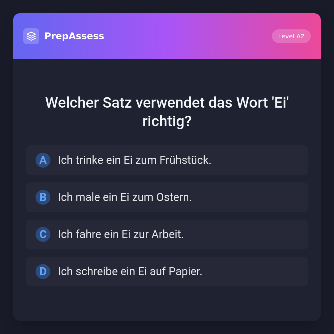Welcher Satz verwendet das Wort 'Ei' richtig?