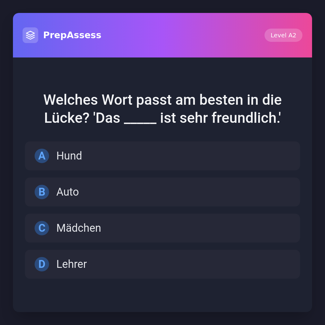 Welches Wort passt am besten in die Lücke? 'Das _____ ist sehr freundlich.'