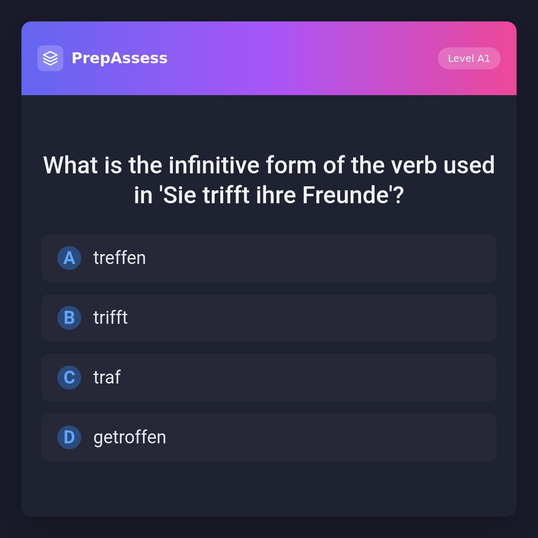 What is the infinitive form of the verb used in 'Sie trifft ihre Freunde'?