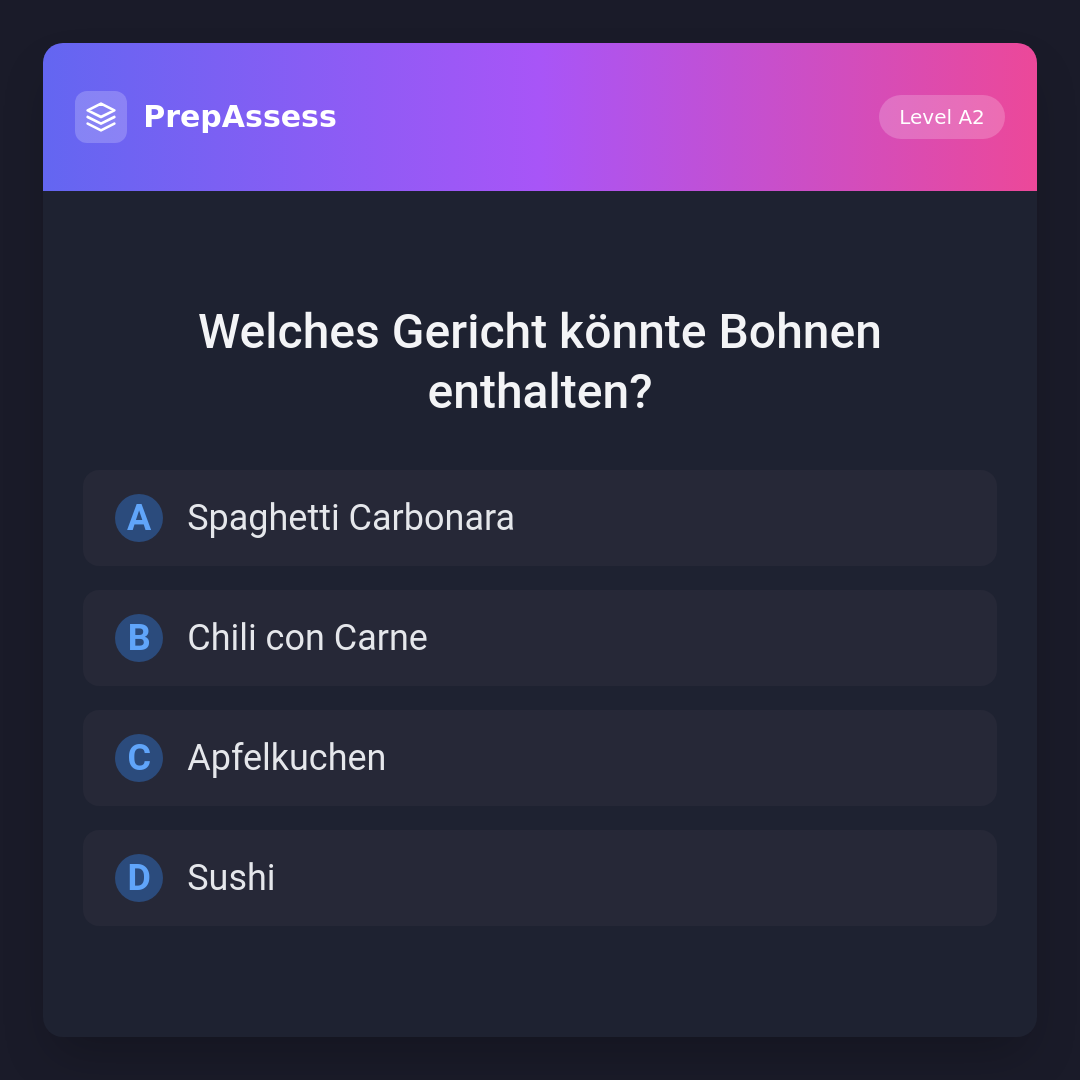 Welches Gericht könnte Bohnen enthalten?
